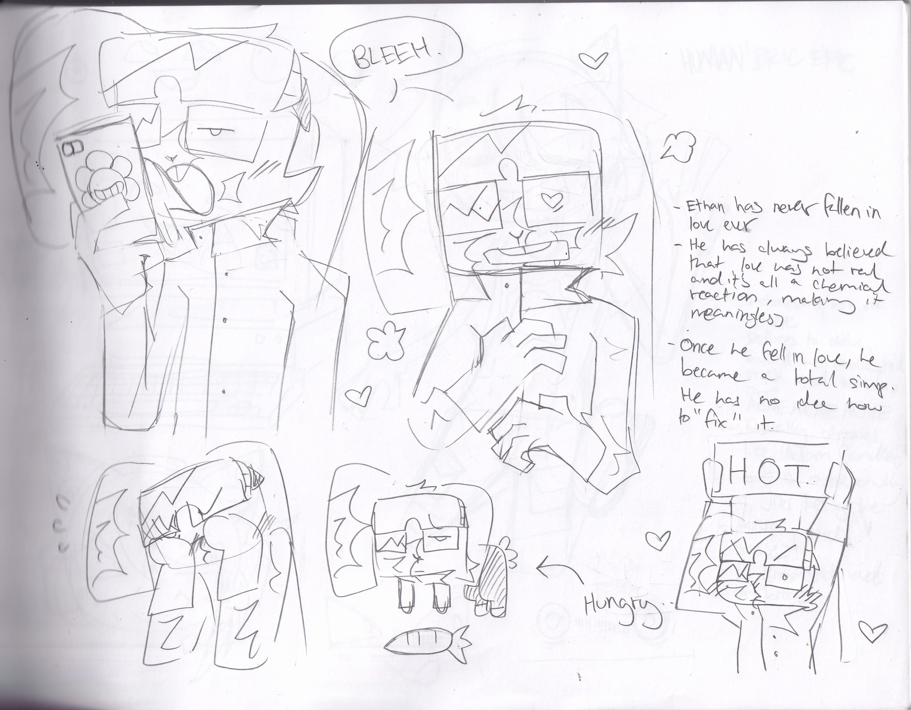 To put it bluntly, Ethan is a questionable individual. He can be described as rather quiet and secretive, but deadly if one dares to get on in his bad side. He has a tendency to be closed off and rather irritable and immature, letting his emotions and inner angst get the best of him at times. However if one was to pry into his layers, he can be described as a little dorky and loser-ish. Ethan has a hard time grasping social norms and being “cool”, coming off as a know-it-all and very matter-of-fact instead. TLDR; he’s a stock standard mad scientist character with a dorky side.